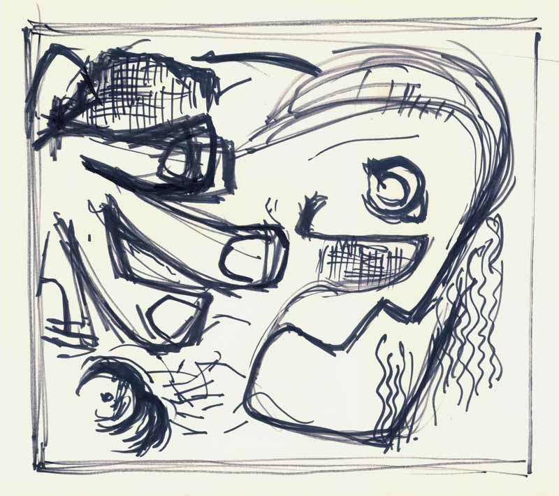 Variation "Zwei Köpfe"; 1963; Maße: 28 x 33 cm,Graphik: Handzeichnung; Tusche auf Zeichenpapier