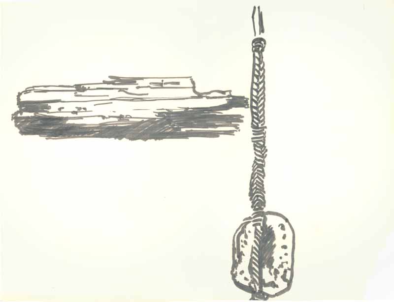 Strandgut "Holz und Strick mit Kork"; 1965; Maße: 29 x 30 cm, / 29,0 x 30,0 cm,Graphik: Handzeichnung; Tusche auf Zeichenblockpapier