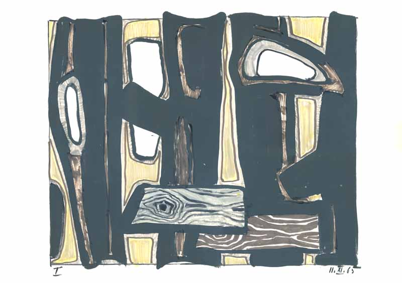 Bäumchen I; 1965; Maße: 41 x 48 cm, / 44 x 62 cm,Graphik: Handzeichnung; Tusche auf Zeichenblockpapier