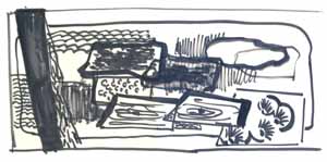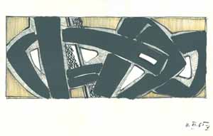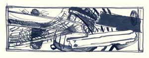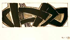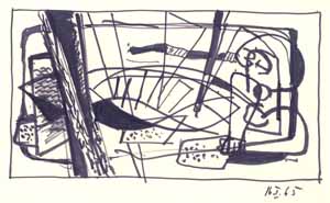 Maritime Variation "Balken und Netze"; 1965; Maße: 13 x 36 cm, / 29,8 x 41,0 cm, Graphik: Handzeichnung; Tusche auf Zeichenblockpapier; Erbeng. Arndt - Reg. Nr.: Z65 - 08/23 - 08