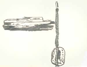 Strandgut "Holz und Seil mit Kork"; 1965; Maße: 29 x 30 cm, / 29,0 x 30,0 cm, Graphik: Handzeichnung; Tusche auf Zeichenblockpapier; Erbeng. Arndt - Reg. Nr.: Z65 - 03/32 - 05
