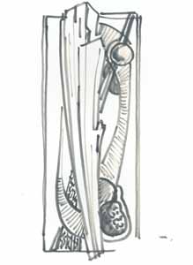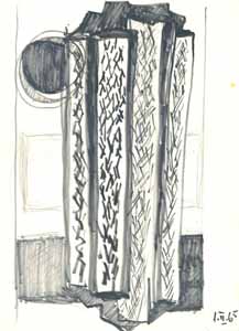 Triptychon (Entwurf zum Materialbild - linker Flügel); 1965; Maße: 40 x 24 cm, / 41,0 x 29,7 cm, Graphik: Handzeichnung; Tusche auf Zeichenblockpapier; dat. u. bez. r.u. "Linker Flügel II 12.10.65"; Erbeng. Arndt - Reg. Nr.: Z65 - 08/22 - 26