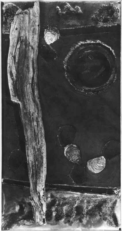 Muscheln auf schwarzem Grund mit blauem Mond; 1966; Maße: 78 x 147 cm
