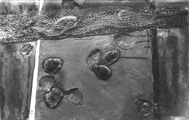 Muscheln auf schwarzem Feld mit gelbem Streifen; 1966; Maße: 123 x 77 cm