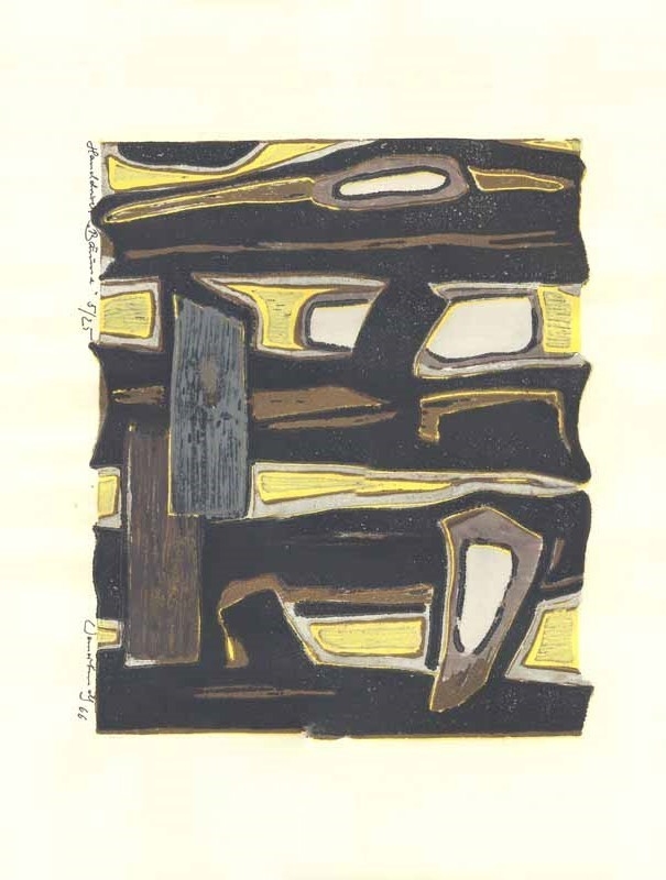 Bäume (Bäumchen); 1966; Maße: 41 x 48 cm, / 53,0 x 75,0 cm,Graphik: Linolschnitt- mit Prägedruck auf Büttenpapier