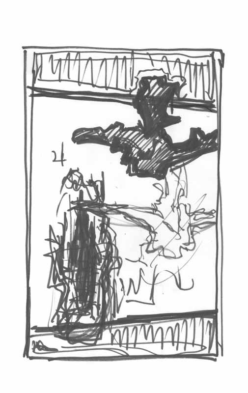 Wurzelstück mit eigenem Schatten; 1967; Maße: 24 x 16 cm, / 29,7 x 19,0 cm,Graphik: Handzeichnung; Tusche auf Zeichenblockpapier