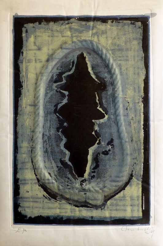Seil mit Durchblick; 1969; Maße: 62 x 40 cm, Graphik: Handsiebdruck mit Prägung auf Büttenpapier