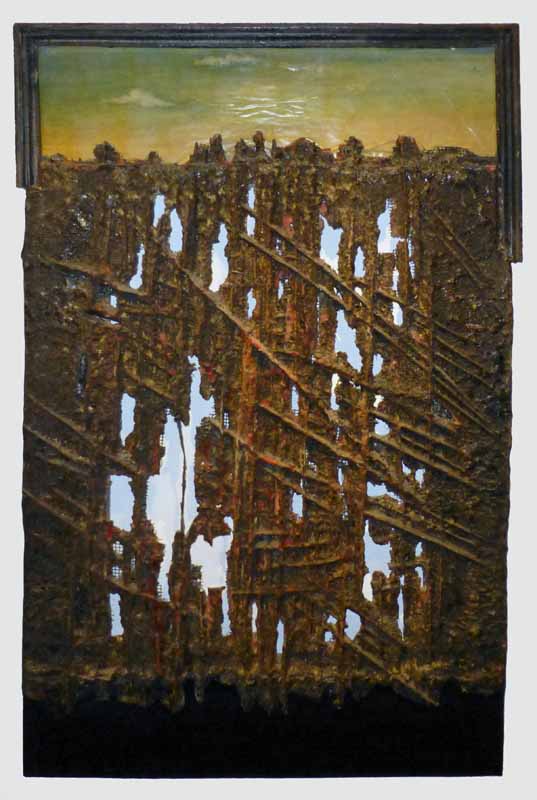 Feuerbild "Terrare Variation mit gemaltem Himmel"; 1969; Maße: 188 x 120 cm; Assemblage (Materialbild)