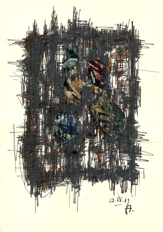 Eccehomo mit altmeisterlich gemalten Fragmenten; 1969; Maße: 54 x 37 cm,Graphik: Handzeichnung; Tusche auf Zeichenpapier