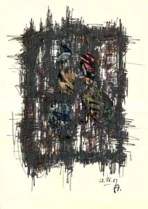 Gekreuzte Strukturen mit Seil; 1969; Maße: 54 x 37 cm, Graphik: Handzeichnung; Tusche auf Zeichenpapier, sign. u. dat. ru "A.23.XII.69", Erbeng. Arndt -Reg. Nr.: Z69 - 20/13 - 08