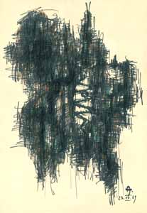Strukturen mit blauem Himmel; 1969; Maße: 43 x 27 cm, Graphik: Handzeichnung; Tusche auf Zeichenpapier, sign. u. dat. ru "A.24.XII.69; Für Friedrich", Privatbesitz, F.A. - Reg. Nr.: Z69 - 32/14 - 09