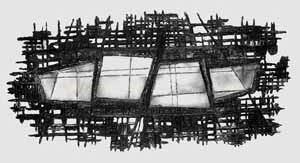 Hohlrücken mit Stuhlelementen und Beinen, 1974, Maße: 60 x 40 cm, Zeichnung: Tusche/Acryl auf Zeichenkarton, sign. u. dat. ru "A 74" Reg.Nr.: Z74-70/11