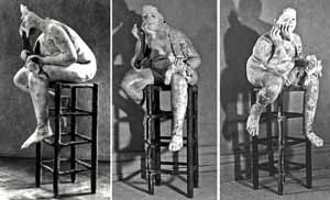 Mädchen im Fledermausstuhl, 1972/73, Maße: 70 x 90 x 80 cm, Figurales Objekt, Naturabformung mit Gipsbinden, Polyesterharz - Plastik, Stuhlgestell: Metall, Erbeng. Arndt - Reg.Nr.: P72-70/07