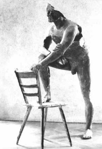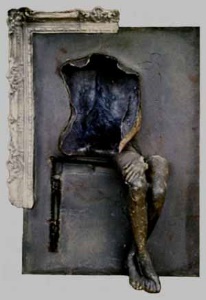 Hohlrücken mit Stuhlelementen und Beinen, 1974, Maße:150 x 100 x 50 cm, Wandrelief, Laminiertes Polyesterharz, Naturabformung mit Gipsbinden, Erbeng. Arndt - Reg.Nr.: B74-70/11