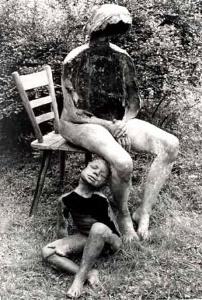 Mutter und Kind, 1974, Maße: 120 x 60 x 140 cm, Figurales Objekt, Naturabformung mit Gipsbinden Polyesterharz - Plastik, Erbeng. Arndt - Reg.Nr.: P74-70/12