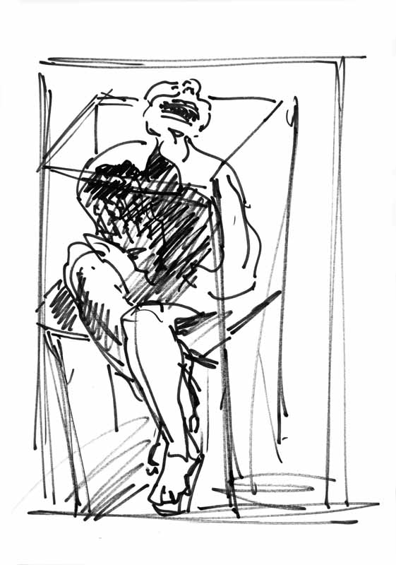 Die Exaltierte, 1975, 26 x 21 cm, PM: 42 x 27,5 cm, Zeichnung: Tusche auf beigem Zeichenkarton