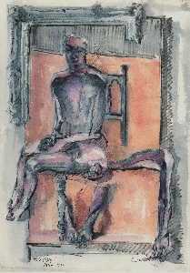 Der Kauernde, 1975, Maße: 47 x 37 cm, Zeichnung: Tusche auf Zeichenpapier, sign. u. dat. lu "A.75" Erbeng. Arndt - Reg.Nr.: Z75-20/12