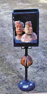 Cagerstele: "Roter Zwilling", 1975, Maße: 154 x 45 x 35 cm, Polyesterharz, Erbeng. Arndt - Reg.Nr.: C75-70/19