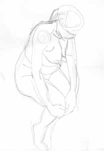 Akt, sitzend, 1975, Maße: 37 x 18 cm, PM: 42 x 33 cm, Zeichnung: Bleistift auf Zeichenpapier, Erbeng. Arndt - Reg.Nr.: Z75-03/14