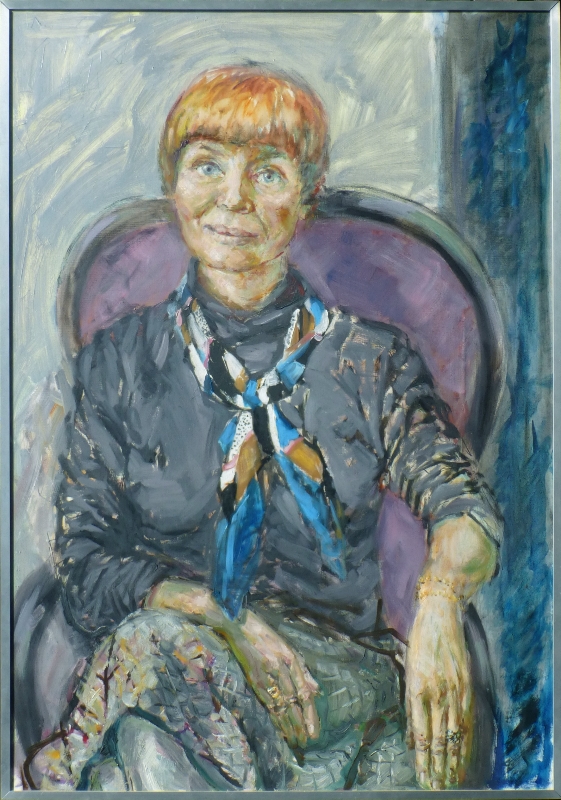 Porträt C.P. auf Sofastuhl sitzend, 1976, 100 x 70 cm, Gemälde: Öl / Acryl auf Leinwand