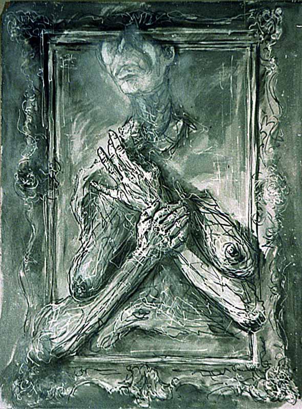 Die Schmerzhafte im Rokkokorahmen, 1977, 80 x 58 cm, Gemälde: Mischtechnik Öl/Acryl auf grundierter Spanplatte