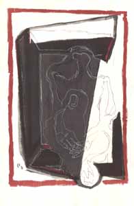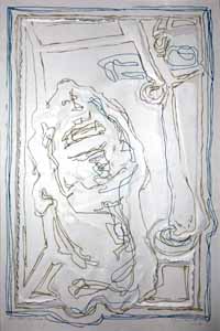 Der Namenlose (Blödel), 1977, Maße: 69 x 46 cm, PM: 80 x 60 cm, Druckgrafik: Siebdruck auf Büttenpapier (sog. Reiß- und Prägegrafik), Aufl.: 25, 2 Siebe - Reg.Nr.: S77-29/32