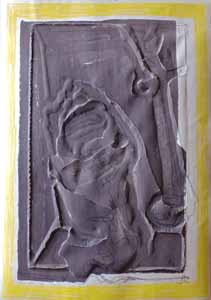 Der Namenlose mit gelbem Rand, 1977, Maße: 77 x 53 x cm, PM: 80 x 60 cm, Druckgrafik: Siebdruck auf Büttenpapier (sog. Reiß- und Prägegrafik), Aufl.: 25, 3 Siebe, sign. u. dat. ru "A.", Reg.Nr.: S77 - 70 /25