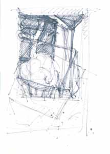 Cager-Silo, 1977, Maße: 110 x 78 cm, Zeichnung: Tusche/Acryl auf beigem Zeichenkarton, sign. u. dat. ru "A 77", Privatbesitz: Fr. E.M., Frankfurt - Reg.Nr.: Z77-70/37