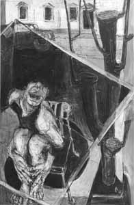Zwei-Cager, 1977, Maße: 73 x 55 cm, Zeichnung: Tusche/Acryl auf graugestreiftem Zeichenpapier, sign. u. dat. l.u. "A. 77" Privatbesitz - Reg.Nr.: Z77-70/34