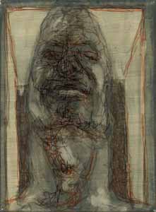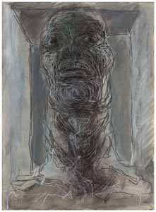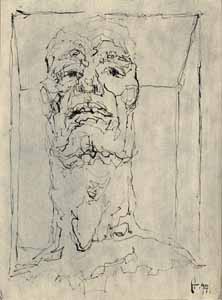 Cager-Kopf, 1977, Maße: 40 x 29 cm, Zeichnung: Tusche/Acryl auf Zeichenpapier, sign. u. dat. ru "A.77" auf der RS: "Var.Kopf II", Erbeng. Arndt - Reg.Nr.: Z77-02/19