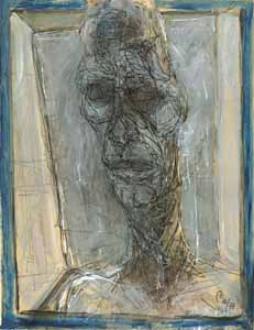 Selbstbildnis mit blauem Rand, 1977, Maße: 65 x 50 cm, PM: 36x 47 cm, Zeichnung: Tusche/Acryl auf Zeichenkarton, sign. u. dat. ru "A 76/77", Erbeng. Arndt - Reg.Nr.: Z77-02/23