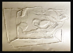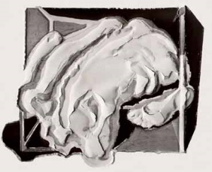 Liegender Rücken im Raum, 1977, Maße: 65 x 80 cm, PM: 65 x 80 cm, Druckgrafik: Siebdruck auf Büttenpapier (sog. Reiß- und Prägegrafik), Aufl.: 50, 3 Siebe Reg.Nr.: S77-70/39
