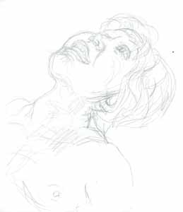 Kopfstudie, 1977, Maße: 36 x 32 cm, PM: 48 x 36 cm, Zeichnung: Bleistift auf Zeichenblockpapier, Erbeng. Arndt - Reg.Nr.: E77-03/23