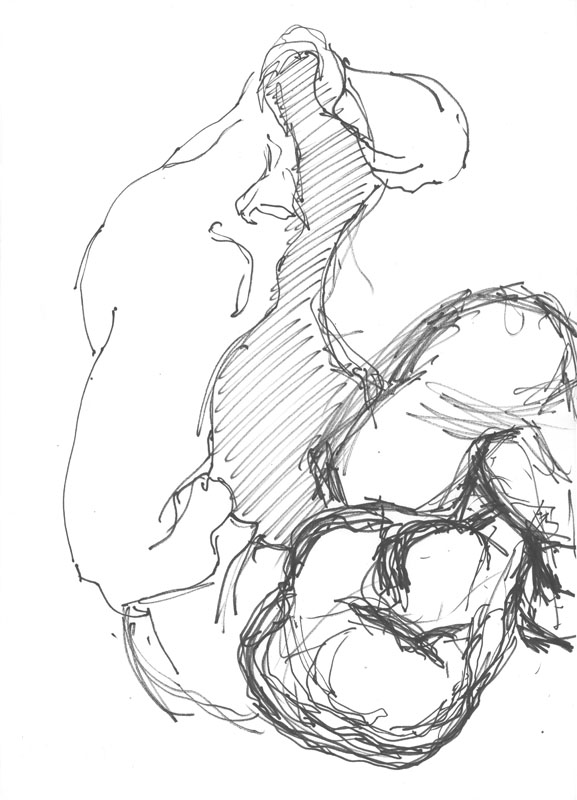 Hohlrücken mit gekreuzten Beinen 1978, 41 x 28 cm, Grafik: Handzeichnung: Tusche auf weißem Zeichenpapier