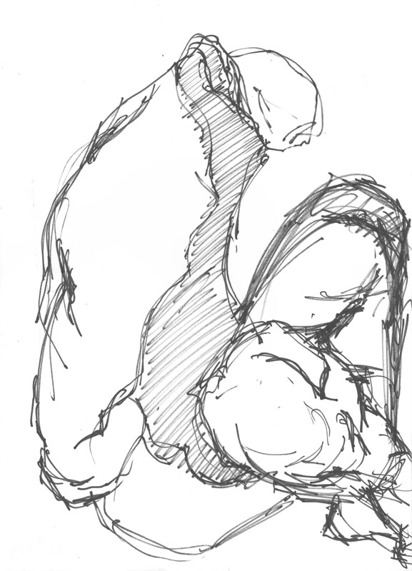 Hohlrücken mit gekreuzten Beinen 1978, 39 x 27 cm, Grafik: Handzeichnung: Tusche auf weißem Zeichenpapier