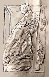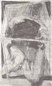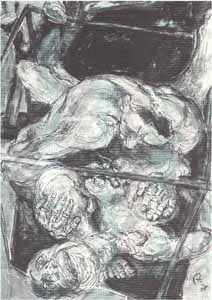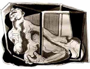 Paar im Cager II (Vergewaltigung II); 1978, 84 x 79 cm, Grafik: Handzeichnung: Tusche/Acryl auf weißem Zeichenkarton, Privatbesitz - Reg.Nr.: Z78-70/45