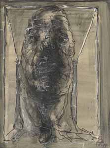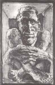 Cager mit gekreuzten Händen; 1978, 90 x 58 cm, Grafik: Handzeichnung: Tusche/Acryl auf Zeichenkarton; Reg.Nr.: Z78-70/38