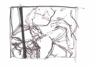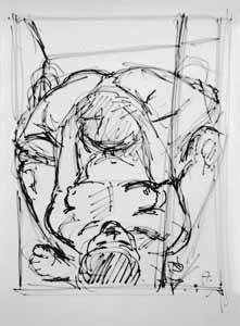 Cager im Zimmer; 1978, Grafik: Handzeichnung: Tusche auf weißem Zeichenkarton, sign. A., r.u. Privatbesitz; Reg.Nr.: Z78-70/61