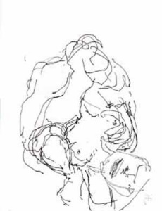 Paar im Cager; 1978, 38 x 27 cm, Grafik: Handzeichnung: Tusche auf weißem Zeichenpapier, sign. A., r.u. Privatbesitz Reg.Nr.: Z78-04/12