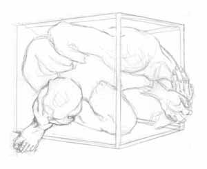 Liegender Rücken mit Händen im Cager; 1978, Maße: 49 x 63 cm, Grafik: Handzeichnung: Bleistift; auf beigem Zeichenpapier, Erbeng. Arndt - Reg.Nr.: Z78-04/27