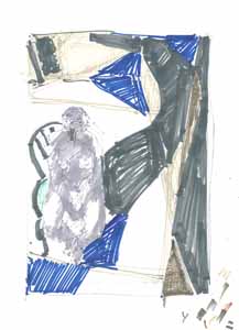 Cager im Zimmer; 1978, 97 x 57 cm, Grafik: Handzeichnung: Tusche/Acryl auf weißem Zeichenkarton, sign. u. dat. A.77/78, r.u. Erbeng. Arndt - Reg.Nr.: Z78-70/60