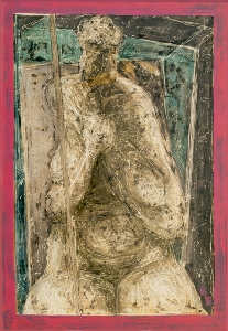 Die Schmerzhafte; 1978, 95 x 65 cm, Gemälde: Misch-/Schabetechnik; Öl/Acryl auf grundierter Schreinerplatte, sign. u. dat. A.78, r.u. Erbeng. Arndt - Reg.Nr.: B 78 70/81