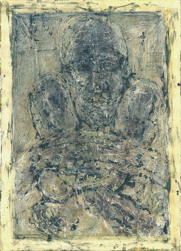 Selbstbildnis mit gelbem Rand; 1979, 67 x 47 cm, Grafik: Handzeichnung: Tusche/Acryl auf Zeichenkarton
