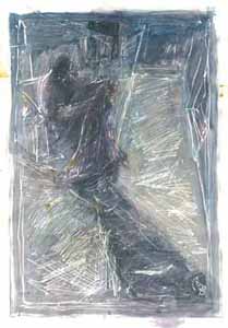 Zimmer-Cager mit Schatten; 1979, Maße: 68 x 46 cm, Grafik: Handzeichnung: Aquarell/Tusche/Acryl; auf Zeichenkarton, sign. u. dat. A.79, r.u. Erbeng. Arndt - Reg.Nr.: Z79-17/19