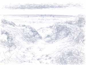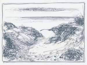 Dünenlandschaft; 1979, Maße: 36 x 48 cm, Grafik: Handzeichnung: Filzstift auf Zeichenblockpapier Erbeng. Arndt - Reg.Nr.: Z79-15/11a