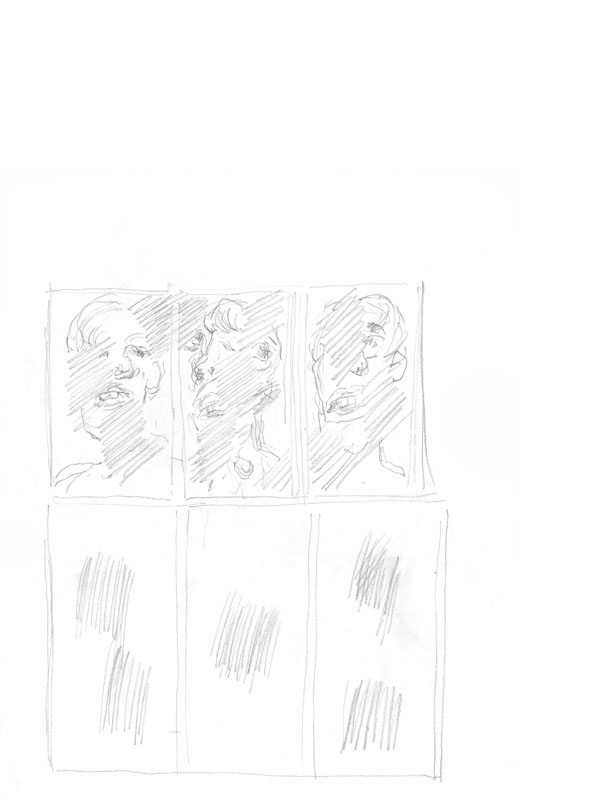 Triptychon-Porträt; 1980; Maße: 50 x 88 cm; Graphik: Handzeichnung; Bleistift auf Zeichenpapier (Skizze zu gleichnamigen Gemälden)
