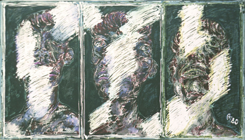 Triptychon - Porträt I; 1980; Maße: 50 x 88 cm; Gemälde: Misch-/Schabetechnik (Öl/ Acryl) auf grundierter Türplatte