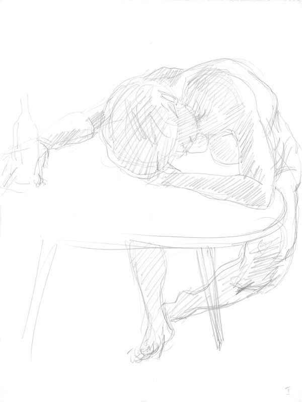 Graphik: Handzeichnung; Bleistift auf Zeichenpapier (Skizze zum gleichnamigen Gemälde)