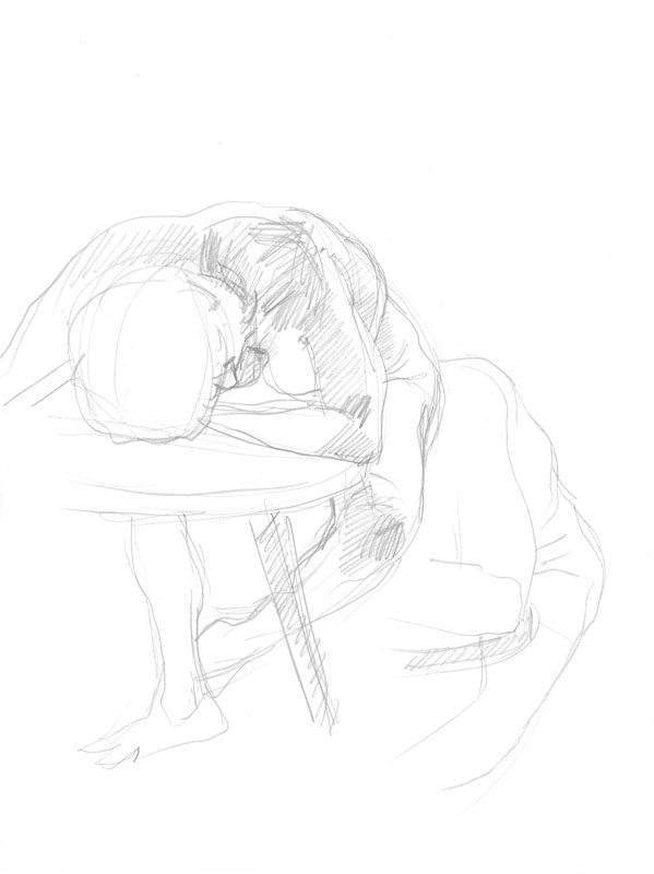 Die Trinkerin; 1980; Maße: 37 x 34 cm; Graphik: Handzeichnung; Bleistift auf Zeichenpapier (Skizze zum gleichnamigen Gemälde)
