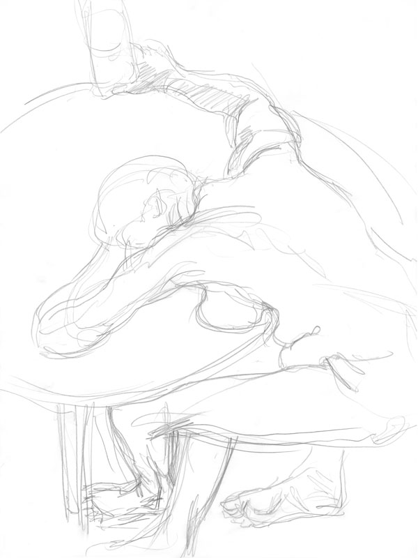 Die Trinkerin; 1980; Maße: 47 x 35 cm; Graphik: Handzeichnung; Bleistift auf Zeichenpapier (Skizze zum gleichnamigen Gemälde)